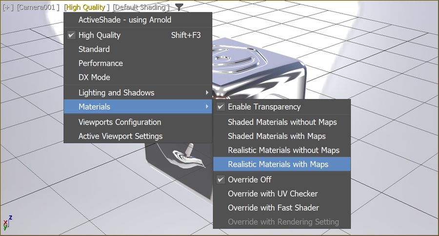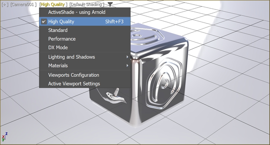 要在3ds Max中启用更好的视口预览,请在视口设置中从标准切换到高质量: