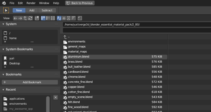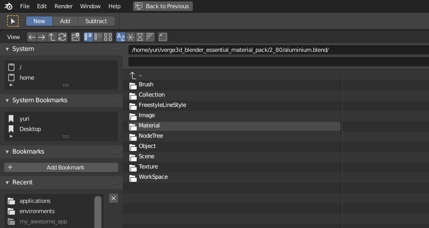 然后导航到库文件夹,并在混合文件上单击一次,并添加要添加的材质。