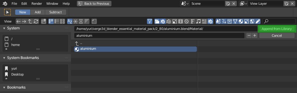 要在项目中使用库材质,请调用“ 文件/追加”对话框。