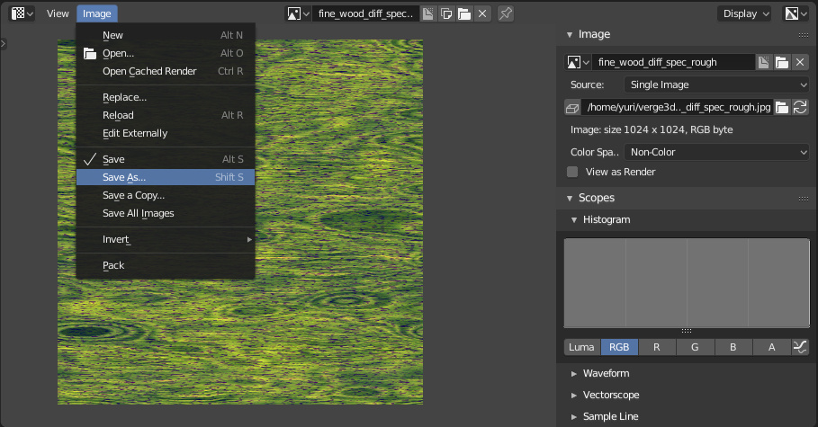 在Blender中 打开图像编辑器(或UV编辑器)。从下拉菜单中选择一个纹理,并检查其文件路径。