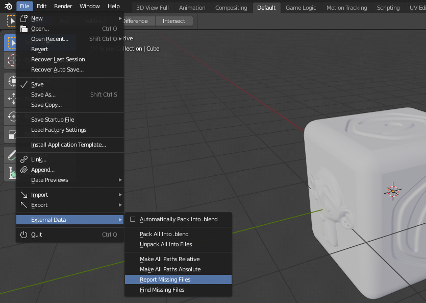 您可以通过将文件夹移动到文件系统中的其他位置来检查应用程序的完整性。打开混合文件并调用文件/外部数据/报告丢失文件。