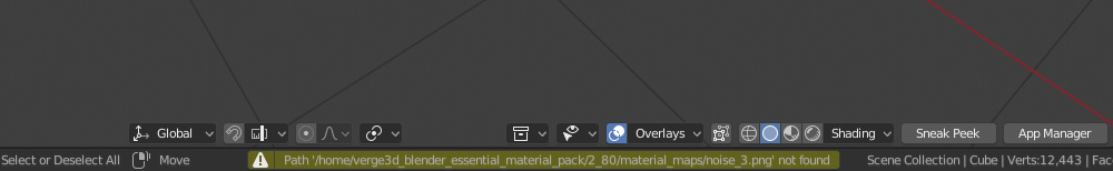 如果缺少混合文件中使用的任何纹理,则底部将显示黄色飞溅警告。