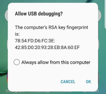 这应该会在您的Android设备上显示一个对话框弹出窗口 - 如果没有,请重新加载chrome://检查或重新插入USB连接线。在弹出窗口中,点击OK即可进行USB调试。