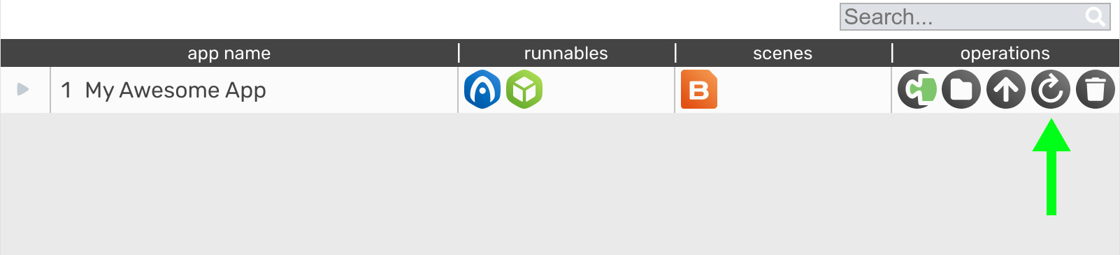 Simply copy the entire folder with your application to the applications folder of the fresh Verge3D installation. After launching the App Manager, your app name should appear in the list of apps (reload the page if not). Click the update button with the round arrow on it.