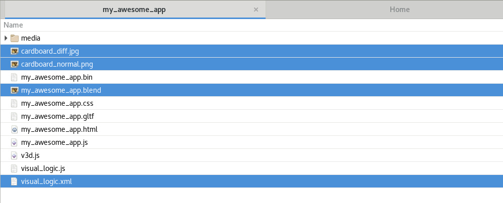此操作将通过verge3d / build文件夹中的文件覆盖引擎模块,即Verge3D运行时v3d.js和可选兼容模块ie_compat.js(由IE 11启用复选框)和webxr-polyfill.js(由Legacy启用)应用创建面板中的VR复选框。如果选择此操作,此操作还将通过verge3d / manager / app / Standard文件夹中的文件覆盖选定的HTML / CSS / JavaScript文件和图标文件夹媒体。