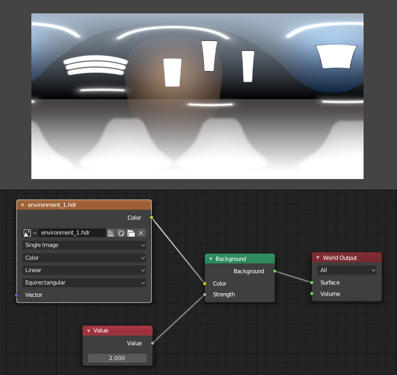 Environment map is a key component of a real-time scene used for providing the background and material reflections. We recommend both 3ds Max and Blender artists to use equirectangular images in HDR or JPEG format (although cube maps are also supported). The size of the environment map is better to not exceed 2048x1024 px.